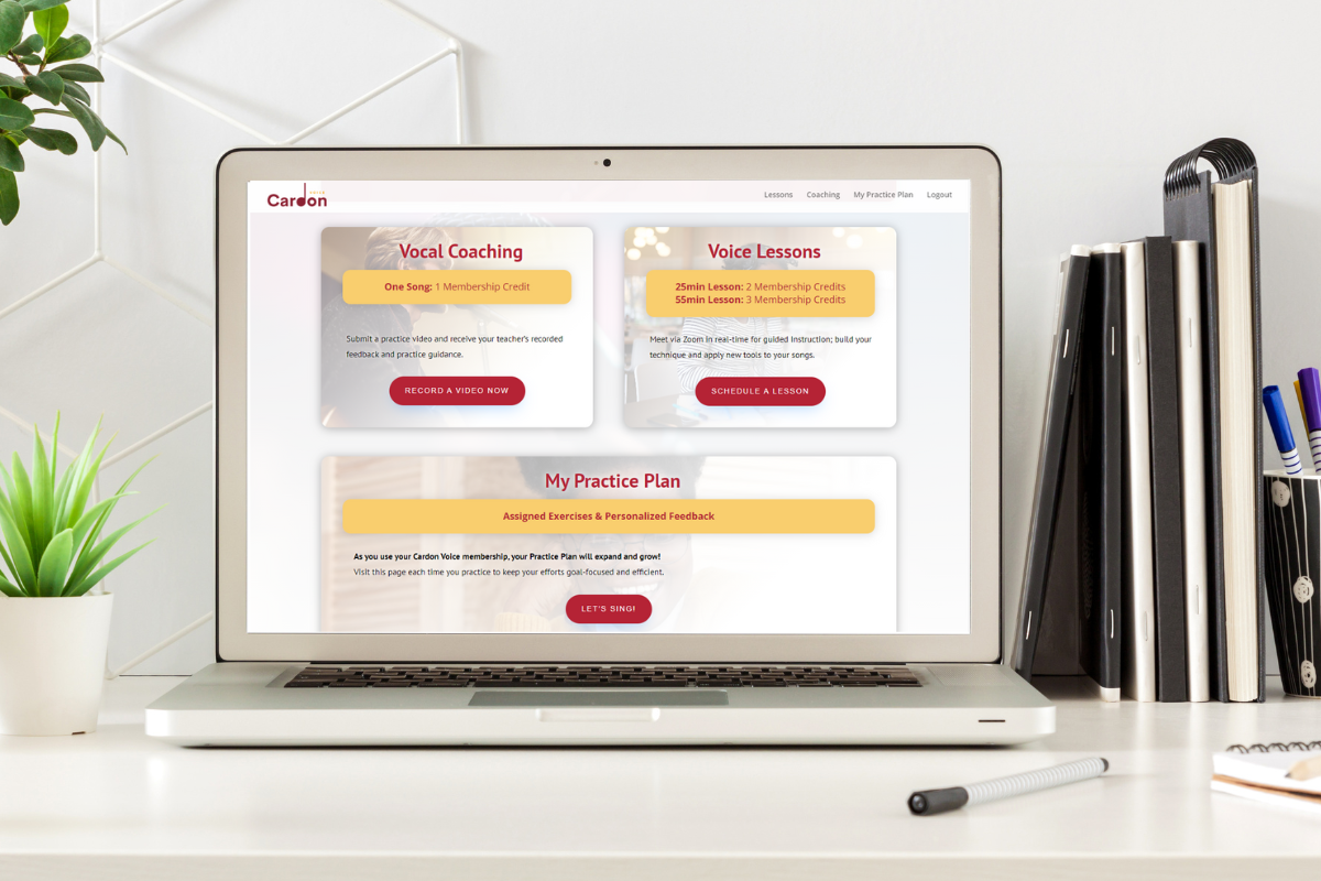 Your Cardon Studios membership includes one-on-one lessons, on-demand vocal coaching, guided practice tools, a robust learning library, and community performance events, everything you need to grow confidently as a singer, all in one place.